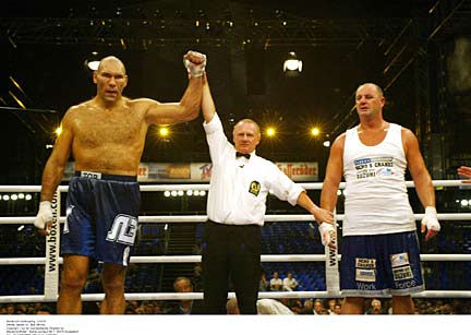 Four hours prior to leaving for Germany Angelo rang me from Germany to tell me Timo had pulled out and they had a replacement Nikolai Valuev the 7 foot 2 inch tall beast from East Russia. It was the last thing i wanted to hear but I took on the challenge. The fight took place in Nurburgring and I did Australia proud. I was the 1st man to stand toe to toe with the giant from Russia and many thought I won this close fight, It went his way, but I received much admoration from the boxing public.